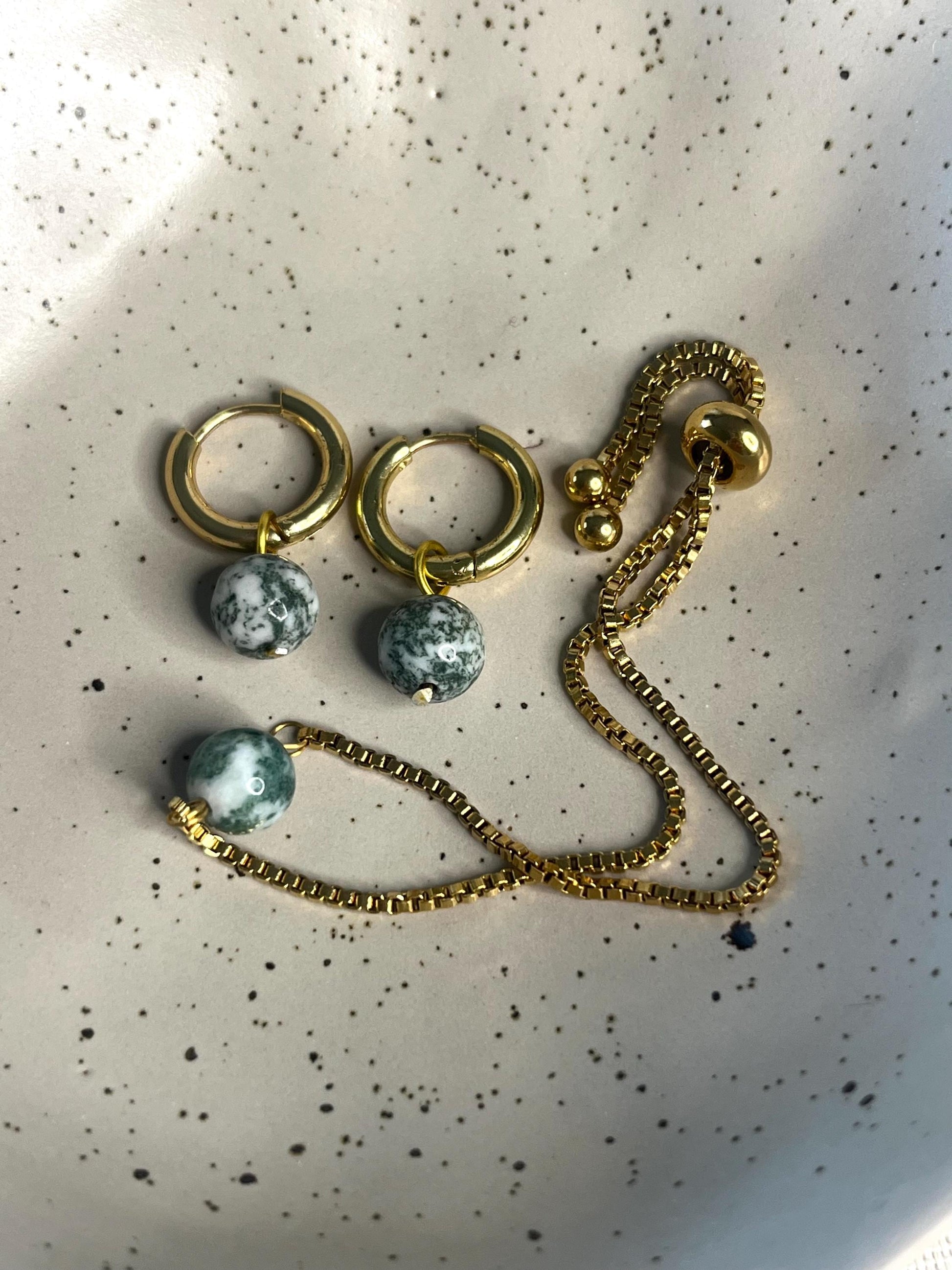 Découvrez l’harmonie parfaite entre style et bien-être avec ce set en agate naturelle, composé de boucles d’oreilles pendantes et d’un bracelet assorti, pensé pour révéler votre force intérieure avec douceur et intention.